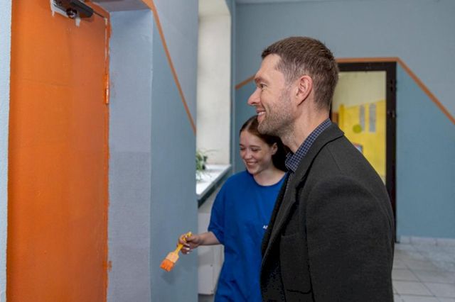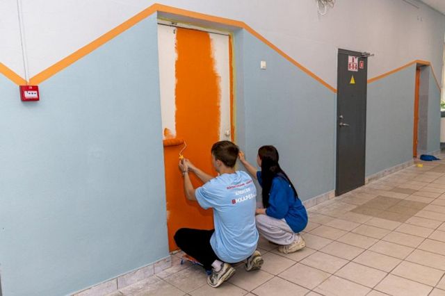 «Депутат помогает нашей школе более пяти лет, в этом году он поздравлял нас с юбилеем и дарил дорогостоящие микрофоны в актовый зал. Сегодня он содействует в подготовке к приемке школы к новому учебному году. Его волонтеры красят рекреации, двери, облагораживают пришкольную территорию, также он приобрел для нас линолеум», — отметил директор школы 67 Павел Селин.