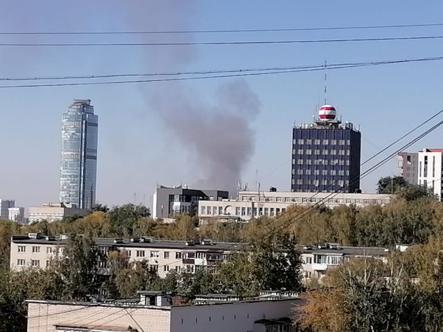 В Екатеринбурге горит здание на ул. Челюскинцев. Клубы дыма видны даже в центре города.