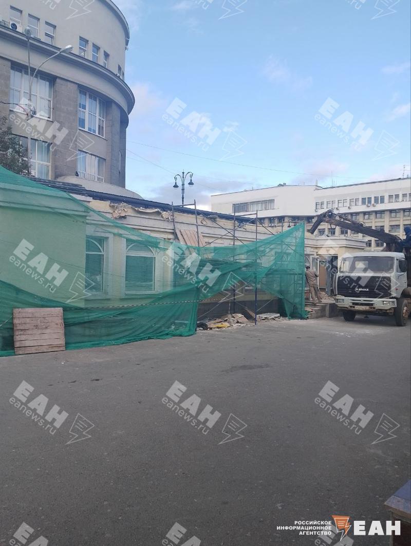 В центре Екатеринбурга между мэрией и станцией метро обрушилась часть здания. Об этом ЕАН сообщили очевидцы.