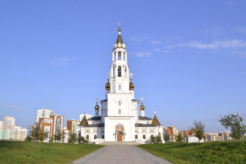 Пока это единственный храм Екатеринбурга, стены которого украшают лики святых. На восточной стороне изображены Иисус Христос, Пресвятая Богородица и Иоанн Предтеча. Западный фасад украсили лики святых Алексия Московского, Иосафа Белгородского, преподобных Афанасия Афонского и Алексия, человека Божиего. Еще две фрески посвящены покровителям семьи и брака — святым Петру и Февронии.