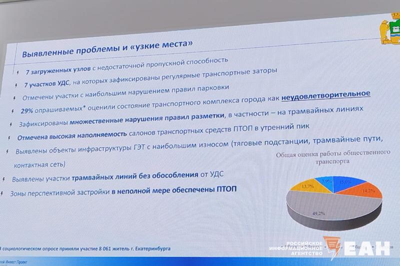 На сегодня готовы результаты опросов. В частности, разработчики выяснили, что 29% екатеринбуржцев неудовлетворены качеством общественного транспорта. Также выявлены семь участков улично-дорожной сети, где регулярно возникают заторы. Однако перечень участков Малинина не предоставила. Не стала она приводить и адреса, где необходимо провести изменения и добавить дополнительные парковочные пространства.