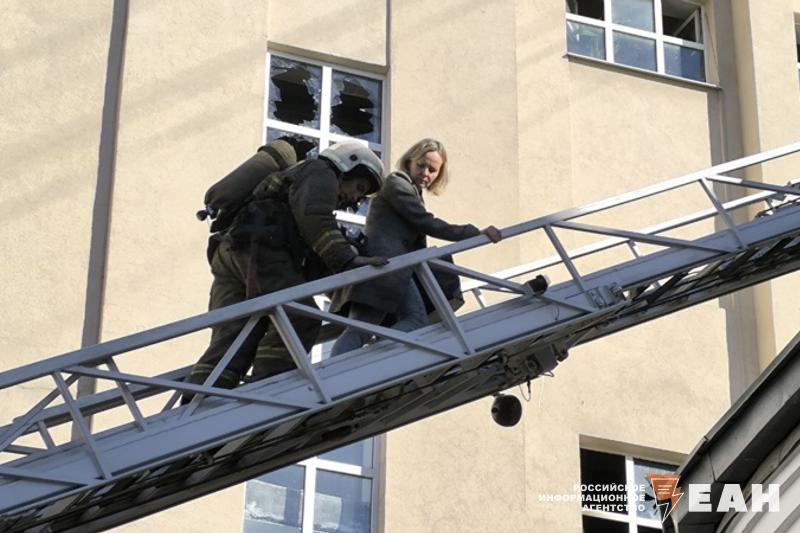 По пожарной лестнице спустили с крыши здания 5 человек, которые спасались там от сильного задымления. Одного пострадавшего вынесли из здания в бессознательном состоянии и увезли на скорой помощи.