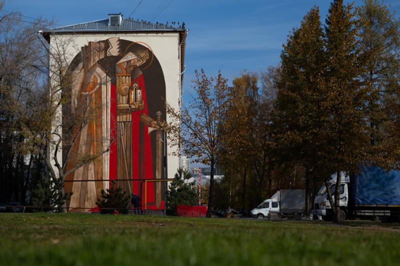 Теперь мурал размещен рядом с Александро-Невским собором, который находится на территории Ново-Тихвинского женского монастыря. Художник Кирилл Ведерников стилизовал свою работу под иконописный сюжет: святой с нимбом и макетом храма в руках. Ведерников подчеркнул, что важно не портретное сходство с князем Александром Невским, а «созидательная часть, противостоящая хаосу».