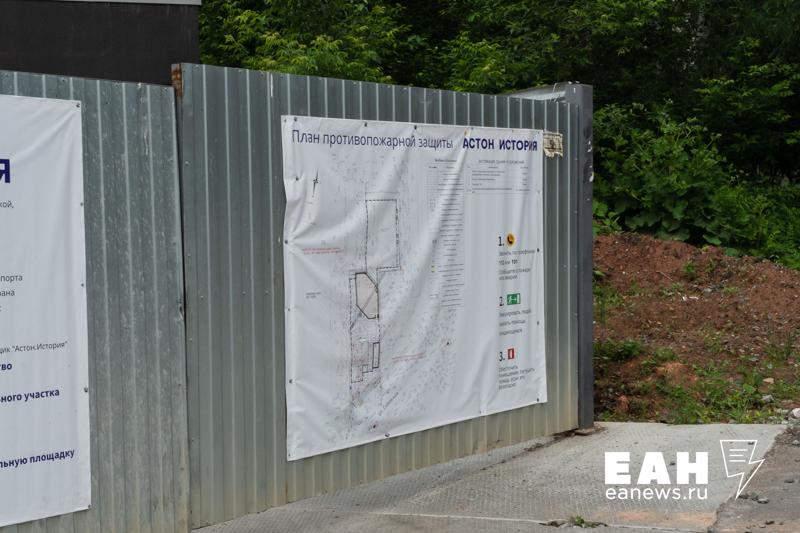 В суде была названа схема, по которой застройщик получил участок. Сначала девелопер выкупил недостроенный подземный гараж и начал строить на его месте спортивное сооружение. В процессе строительства была выкуплена земля и компания изменила планы. Застройщик получил в мэрии разрешение на возведение 32-этажного жилого дома и уже успел продать 30 квартир. Прокуратура считает, что в процессе продажи участка был нарушен Земельный кодекс, поскольку «Астон. История» получил территорию без торгов. В конце июня Арбитражный суд Свердловской области приостановил работы по строительству высотного дома.
