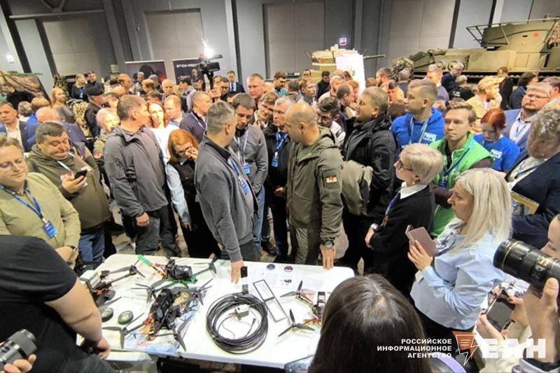 Как рассказывает корреспондент ЕАН, сначала Артем Жога посетил выставку образцов «народного» ВПК. Здесь собраны изделия, включая дроны, изготовленные и бизнесменами, и неравнодушными людьми.
