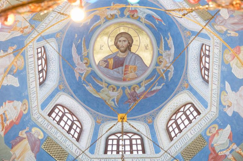 Также изображено освобождение святого апостола Петра архангелом Михаилом. На стенах храма появились лики святых царственных страстотерпцев и святых воинов. В своей работе художники опирались на традиции росписи сербских и византийских художников, а сам проект был создан вместе с сестрами Ново-Тихвинского женского монастыря.