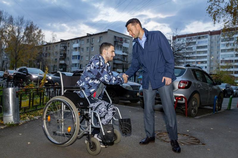 Артиллерист Александр Бурдуков был мобилизован. В мирной зоне ДНР лагерь бойцов разбомбили ВСУ. Екатеринбуржец лишился ноги и части руки. Он попросил Вихарева установить пандус в его подъезде. Депутат выделил средства на пандус и организовал необходимые работы.