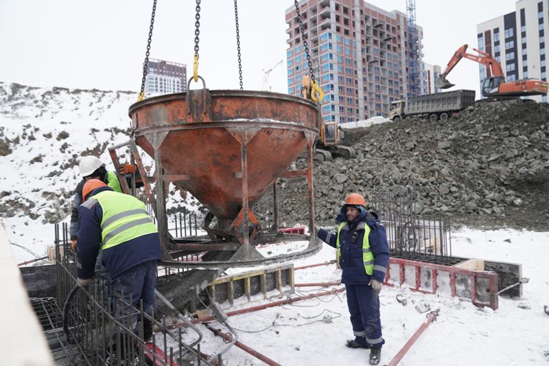 В Екатеринбурге сегодня прошла торжественная церемония первой заливки бетона в основание трех новых секций квартала «Нагорный» на пересечении улиц Татищева и Токарей. К концу 2026 года здесь возведут три секции 18, 21 и 28 этажей общей площадью 22 тыс. кв. м.