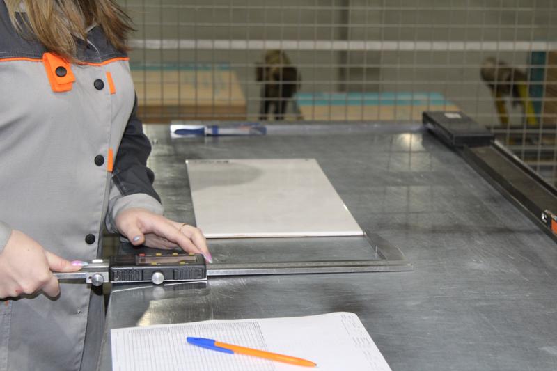 Как пояснили на предприятии, контроль качества осуществляется на всех этапах изготовления продукции: начиная с подготовки сырья и заканчивая упаковкой готовой плитки. В большинстве случаев это происходит в автоматическом режиме, поскольку на многих участках производственной линии установлены высокотехнологичные автоматизированные системы контроля. Однако последнее решение о том, соответствует ли продукция установленным стандартам, остается за контролером-приемщиком.