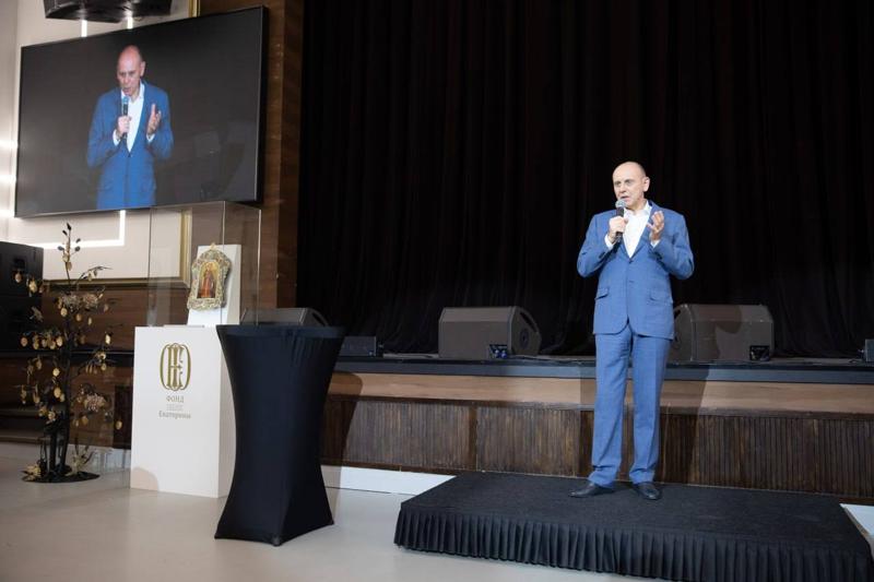 В Екатеринбурге по итогам благотворительного аукциона на Екатерининской ассамблее было собрано 210,37 млн рублей. Самым щедрым меценатом в пятый раз стал владелец группы компаний «Сима-ленд» Андрей Симановский. По итогам мероприятия он получил от Фонда святой Екатерины уникальную икону с изображением небесной покровительницы города.