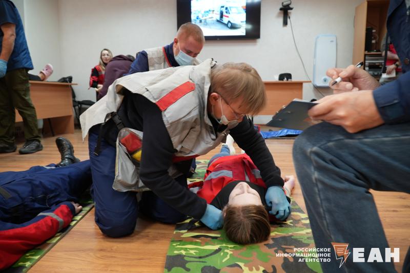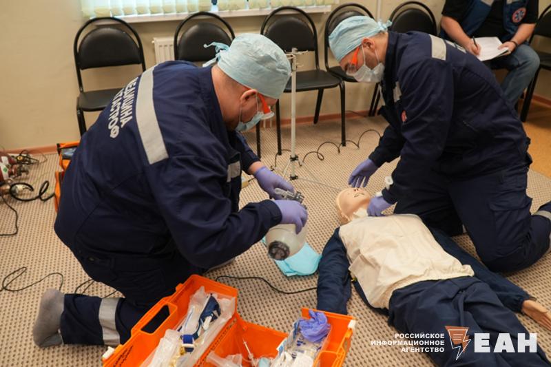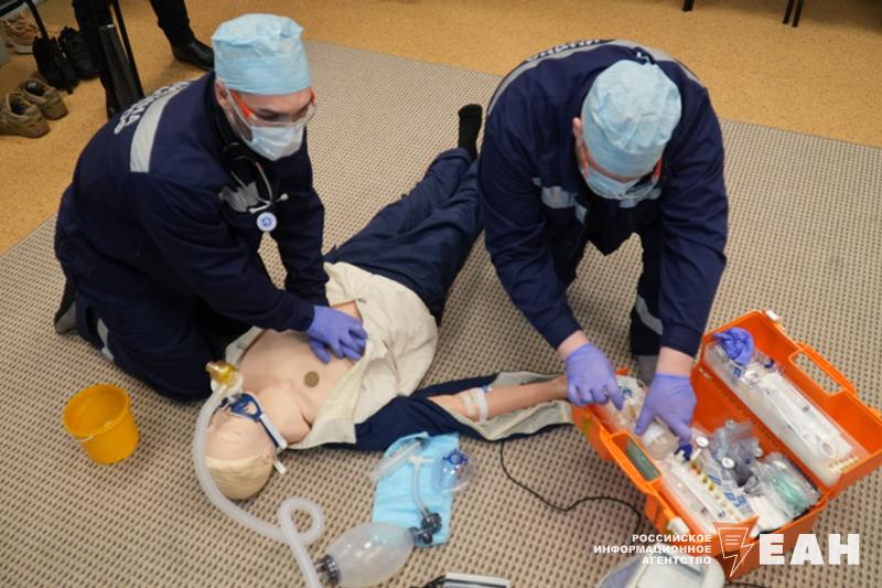 После награждения прошли соревнования по профессиональному мастерству среди фельдшерских бригад трассовых пунктов. В этом году участники оказывали помощь "пострадавшим" в массовом ДТП, роль которых исполнили студенты СОМК. По легенде, в горящей машине застрял человек, нужно потушить автомобиль, обесточить аккумулятор, вырезать кусок металла, мешающий спасению пострадавшего, затем аккуратно переложить человека на носилки и перенести через полосу препятствий, чтобы затем погрузить в реанимобиль. В среднем у команд трассовых пунктов уходило на весь процесс 1,5-2 минуты. После этого специалисты должны были провести реанимационные действия с пострадавшими.