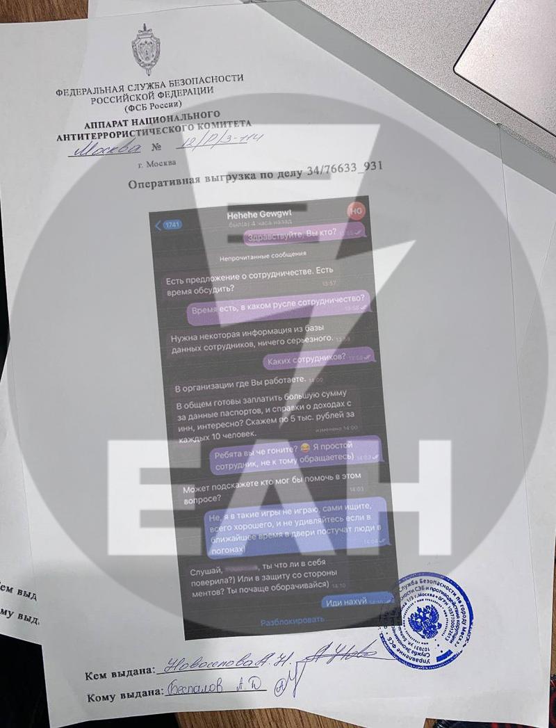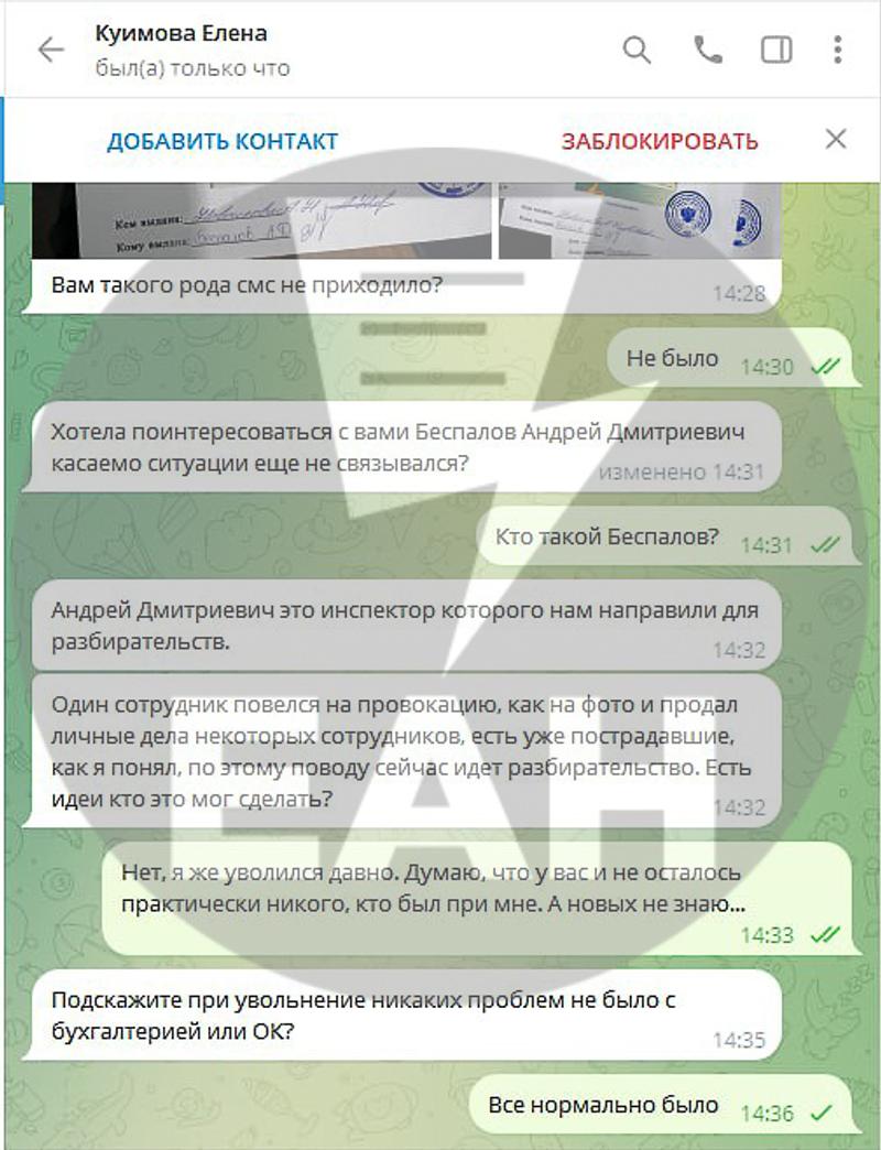 «Один сотрудник повелся на провокацию, как на фото и продал личные дела некоторых сотрудников, есть уже пострадавшие, как я поняла, по этому поводу сейчас идет разбирательство. Есть идеи, кто это мог сделать?» - спрашивает некто.