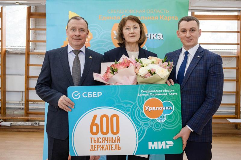 Обладательницей 600-тысячной Единой социальной карты «Уралочка» стала олимпийская чемпионка, игрок волейбольной команды «Уралочка», клиент Сбербанка Ольга Цейцина. Карту ей вручил лично глава Екатеринбурга Алексей Орлов.