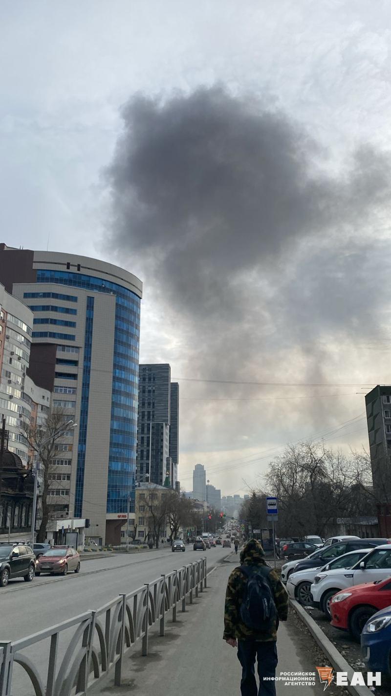 Центр Екатеринбурга заволокло дымом из-за пожара в районе ТРЦ «Гринвич». Об этом ЕАН сообщили очевидцы ЧП.