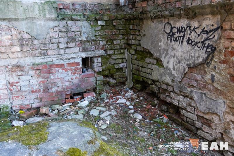 Надежность гражданского укрытия вызывает сомнения. Местами в основании дома лопнули шпалы. Даже невооруженным взглядом видна просадка здания. Кирпичная кладка части стены осыпалась аккурат под жилыми этажами. Из-за непроходящей сырости комнаты в общежитии покрылись плесенью, полы проваливаются под ногами. В таких условиях люди живут уже десять лет, как дом начал рушиться.