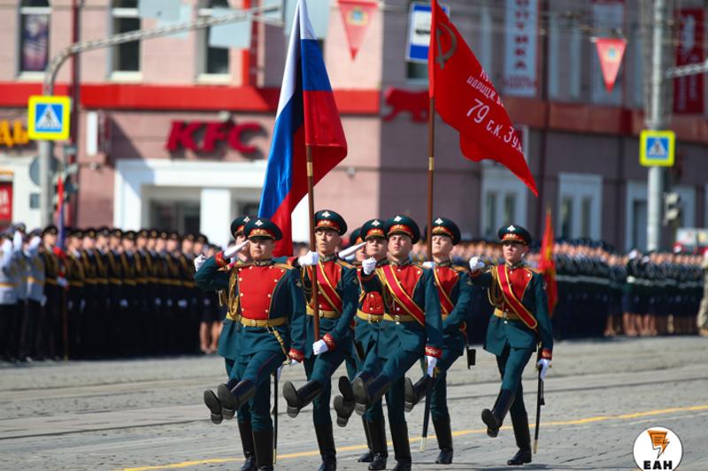 Под знаменем Победы подразумевается штурмовой флаг 150-й ордена Кутузова II степени Идрицкой стрелковой дивизии. 1 мая 1945 года этот флаг был водружен над зданием рейхстага в Берлине.