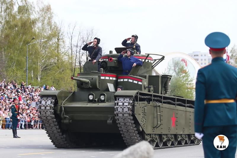 В колонне техники Красной Армии традиционно пройдут танки Т-26, Т-35, легкий колесно-гусеничный танк БТ-7, тяжелый танк ИС-2, бронеавтомобиль БА-20. Во главе парадной колонны будет ехать мотоциклетный кортеж. Вся боевая ретротехника находится в исправном состоянии и будет двигаться своим ходом.