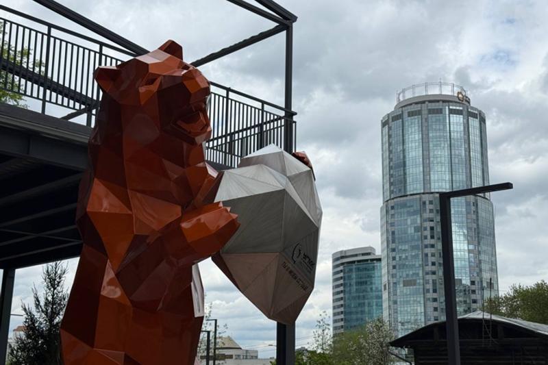 В центре Екатеринбурга появился новый арт-объект – трехметровый медведь, который держит в лапах сердце. По замыслу автора композиции, известного уральского мастера Алексея Ермакова, скульптура отражает тему любви к родному городу.