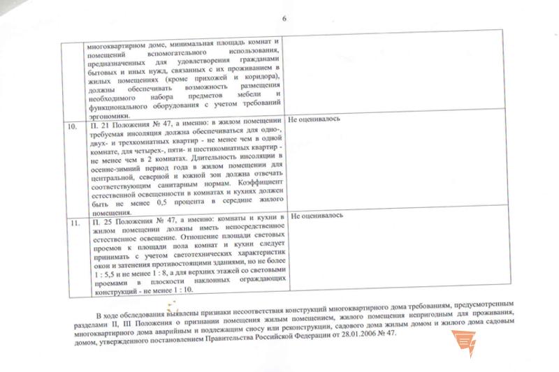 «В ходе обследования выявлены признаки несоответствия конструкций многоквартирного дома требованиям, предусмотренным разделами II, III «Положения о признании помещения жилым помещением, жилого помещения непригодным для проживания, многоквартирного дома аварийным и подлежащим сносу или реконструкции», – сказано в заключении комиссии.