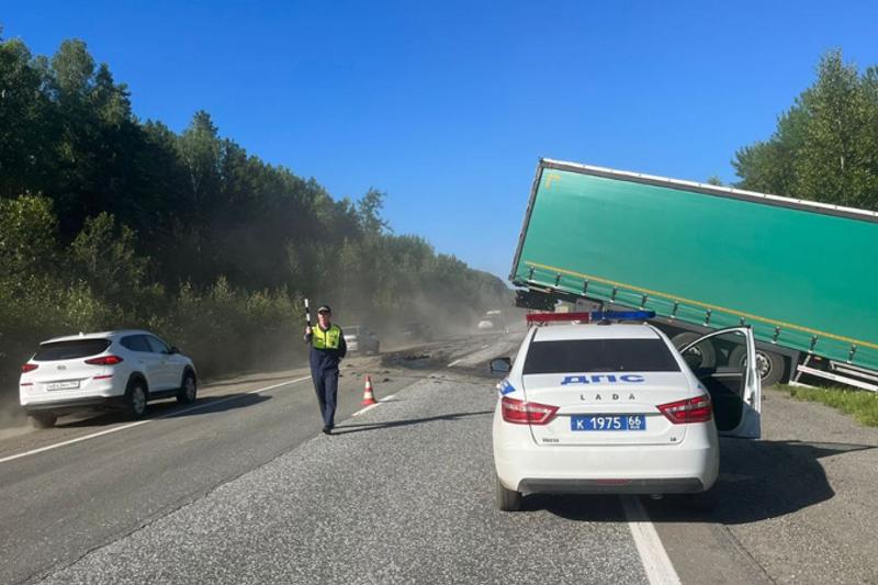По предварительной информации, 50-летний водитель автомобиля Kia, двигаясь в сторону Серова, по неустановленой причине выехал на полосу встречного движения. Там он столкнулся с фурой Dongfeng. Обе машины улетели в кювет.