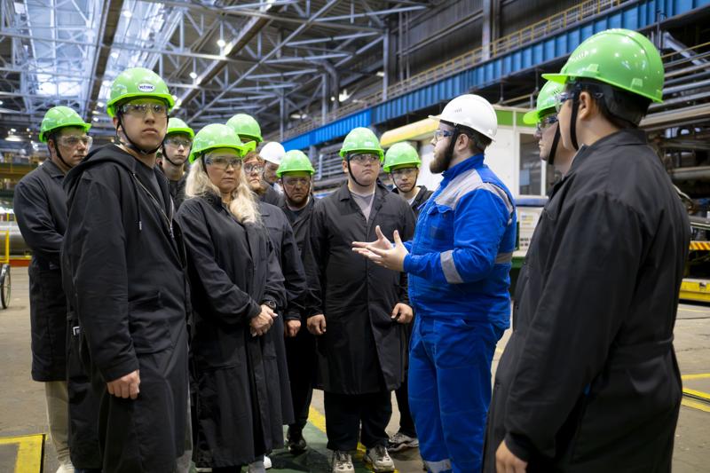 Речь идет о будущих студентах направления «Металлургическое производство/Обработка металлов в металлургическом производстве». Выпускников и их родителей знакомят с современным оборудованием, рассказывают о востребованных на заводе специальностях и условиях обучения — с фокусом на практику, индивидуальный подход и материальную поддержку студентов.