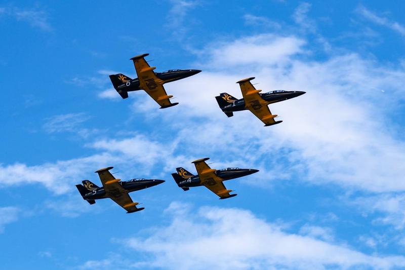«Пилотажная группа прибыла к нам, чтобы в предстоящие выходные совершить показательное выступление в небе над Екатеринбургом. Перрон нашего аэропорта принял четверку Л-39 “альбатрос”», - сообщили в Кольцово.