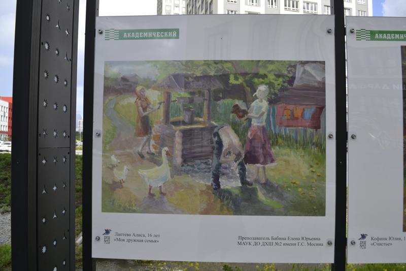 В екатеринбургском Академическом открылась выставка картин учеников филиала детской художественной школы №2 имени Геннадия Мосина. Экспозицию можно увидеть на Аллее творчества, расположенной на набережной между улицами Вильгельма де Геннина и Рябинина. Темы работ посвящены лету, отдыху и теплому общению с близкими.