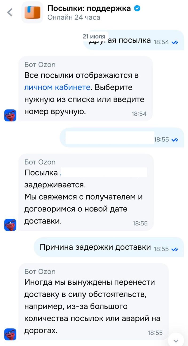 Ozon задерживает доставку посылок для екатеринбуржцев. Об этом ЕАН рассказала пострадавшая Марина Л.