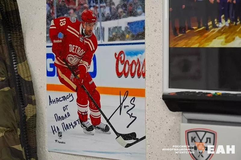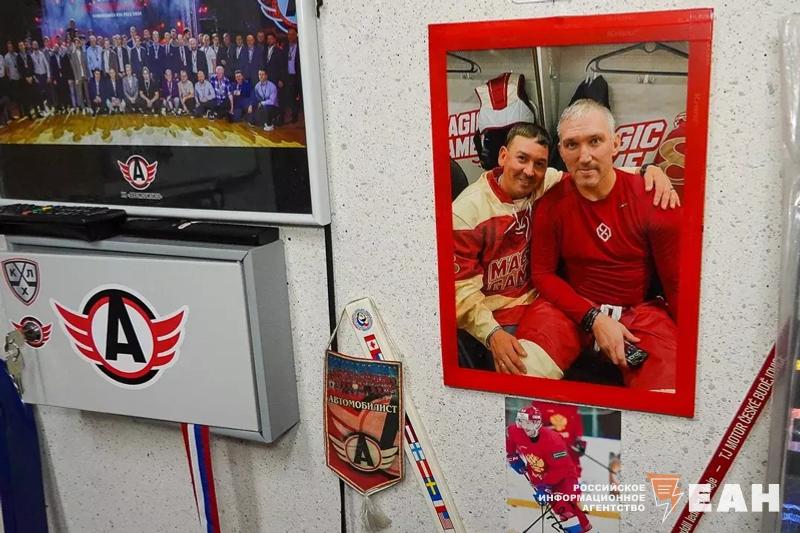 Мастерская обустроена по-домашнему: на стенах фотографии, среди которых кадры с мировыми звездами Павлом Дацюком и Александром Овечкиным, а также с екатеринбургской легендой Никитой Трямкиным.