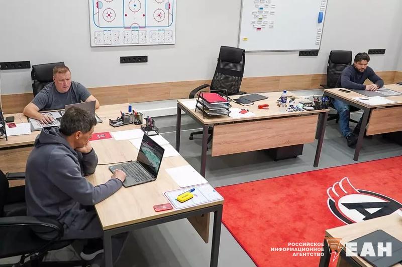 Неподалеку работают видеотренеры Артем Ширгазиев и Михаил Демидов. Они готовят разборы матчей, статистику и индивидуальные видеофрагменты.