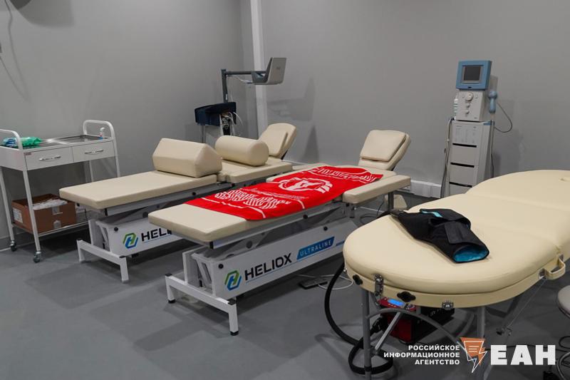 Восстановление проводится с применением современных аппаратов — GameReady, NormaTec, ударно-волновой терапии, а также холодных ванн, джакузи и криосауны, которые расположены в спа-зоне. Контроль состава тела ведется с помощью биоимпеданса (метод анализа состава тела, основанный на измерении его электрического сопротивления (импеданса) для определения количества жира, мышц, воды и костной ткани). Процедуры подбираются индивидуально. Часть нагрузки с врачами разделяют массажисты.