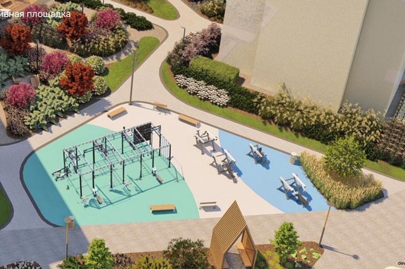 Восточный Урал ассоциируется с индустриальным характером региона - металлургия и производство. Основные материалы благоустройства — металл и бетон. Здесь появится скалодром в виде бельчонка и первый общественный огород в Академическом районе, заложенный на этапе проектирования. Этот огород станет новым форматом взаимодействия жителей с природой и пространством.