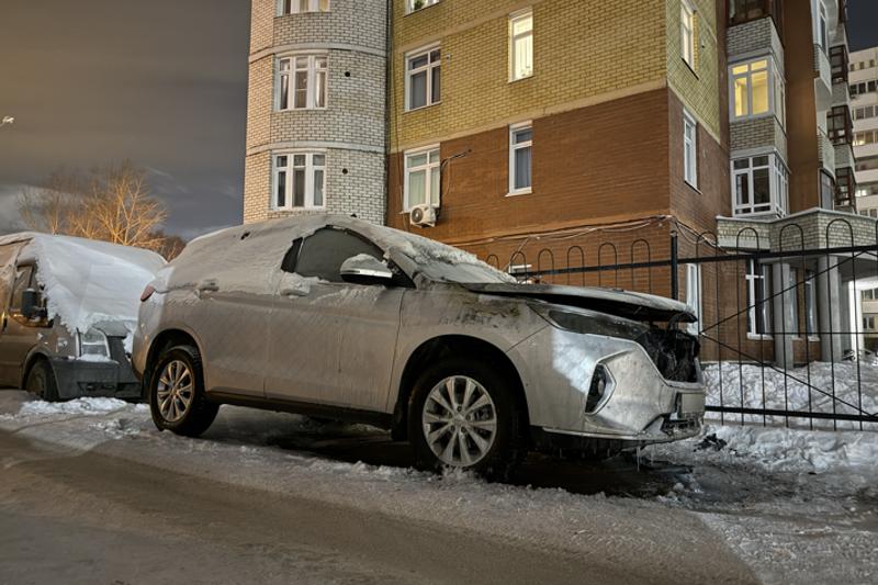 Жильцы соседнего дома начали забрасывать полыхающий кроссовер снегом. Но окончательно справиться с огнем смогли лишь пожарные. В результате пожара у автомобиля повредился моторный отсек и поверхность капота.