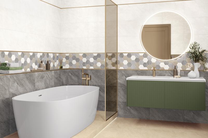 В минувшем году дизайнеры представили в формате 300x600 мм от бренда ALMA ceramica коллекции Azimut, Bronks, Greta, Savoy. Серии произведены с матовой поверхностью, с текстурами камня, бетона, мрамора и флористической тематикой. Отдельные артикулы дополнены рельефом, что придает текстуре объем, а интерьеру — интересный ритм и динамику. В каждой коллекции элементы можно комбинировать между собой, создавая цельные композиции, или использовать точечно, реализуя смелые дизайнерские замыслы и подчеркивая индивидуальность пространства.