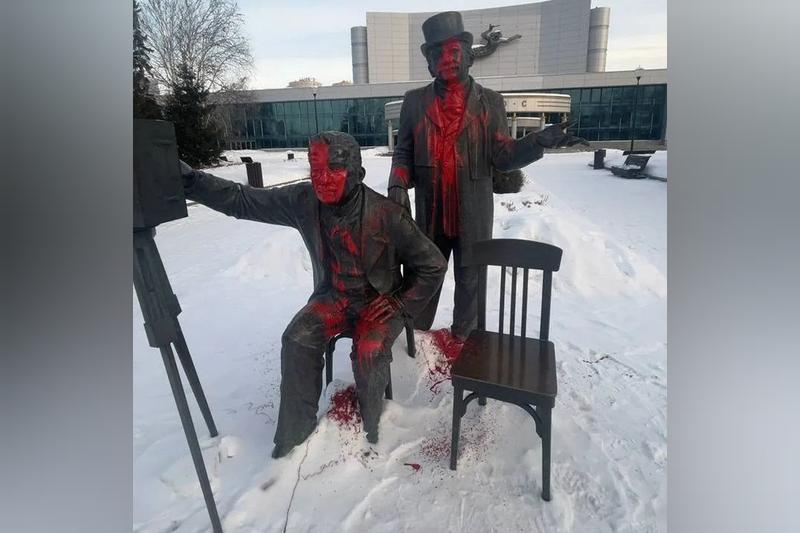 В Екатеринбурге неизвестные облили краской памятник братьям Люмьер. Об этом сообщил telegram-канал «Екатеринбург. Главное», близкий к мэрии города.