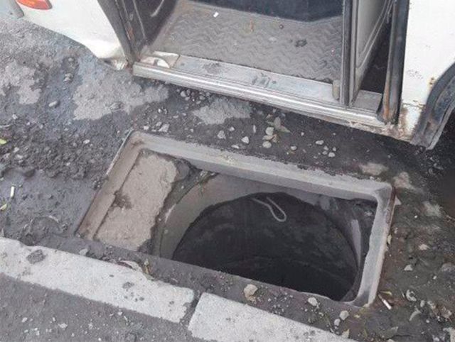 В Кургане водитель маршрутки высадил пассажиров в открытый канализационный люк, сообщают пользователи социальной сети «ВКонтакте» в паблике «Инцидент Курган».