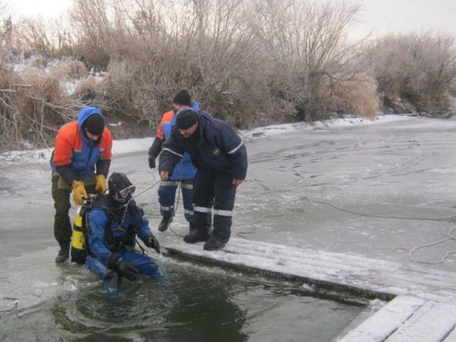 Последние дни осмотр толщи воды через лед затруднял снегопад. Вооружившись лопатами специалисты метр за метром расчищали поверхность замерзшей реки, чтобы обеспечить видимость.