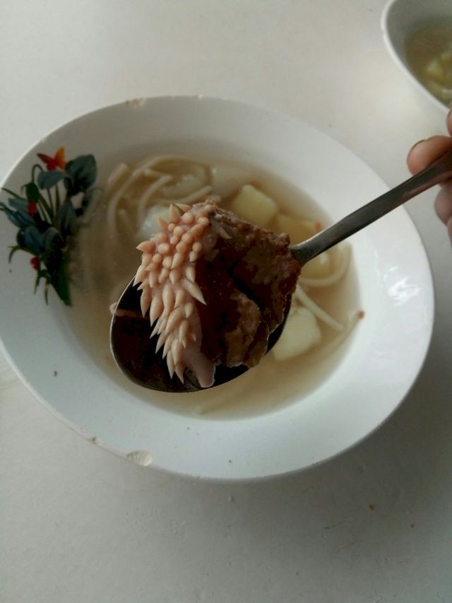 В комментариях одни пользователи возмущаются, другие шутят. Так, среди предположений о происхождении куска с “щупальцами” есть варианты «ежик», «утка недощипанная», «доисторическое животное».