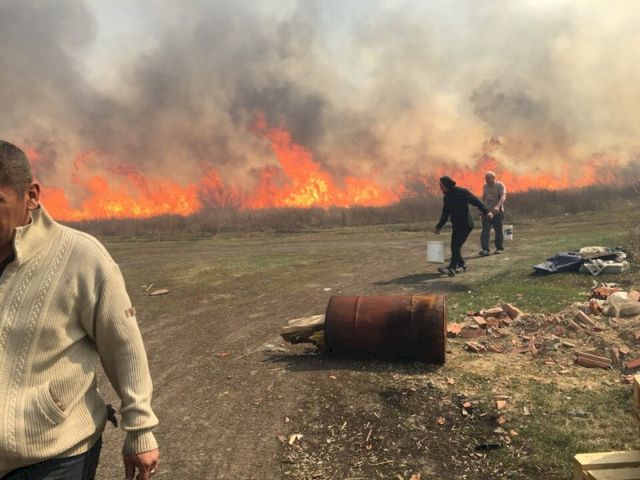 Сначала загорелась трава. Сообщение об этом поступило в МЧС около 12:40. Штормовой ветер усилил пожар, создав угрозу поселку. Около 16:00 огонь перекинулся на несколько жилых домов. Улицы поселка затянуты едким дымом.