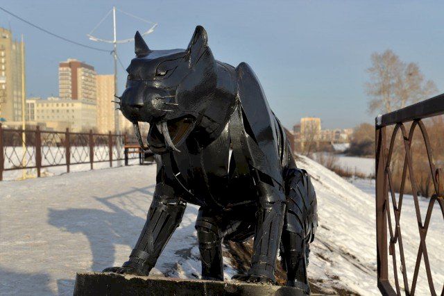В Кургане продолжается благоустройство городской набережной . Накануне там появился новый арт-объект — металлический саблезубый тигр.