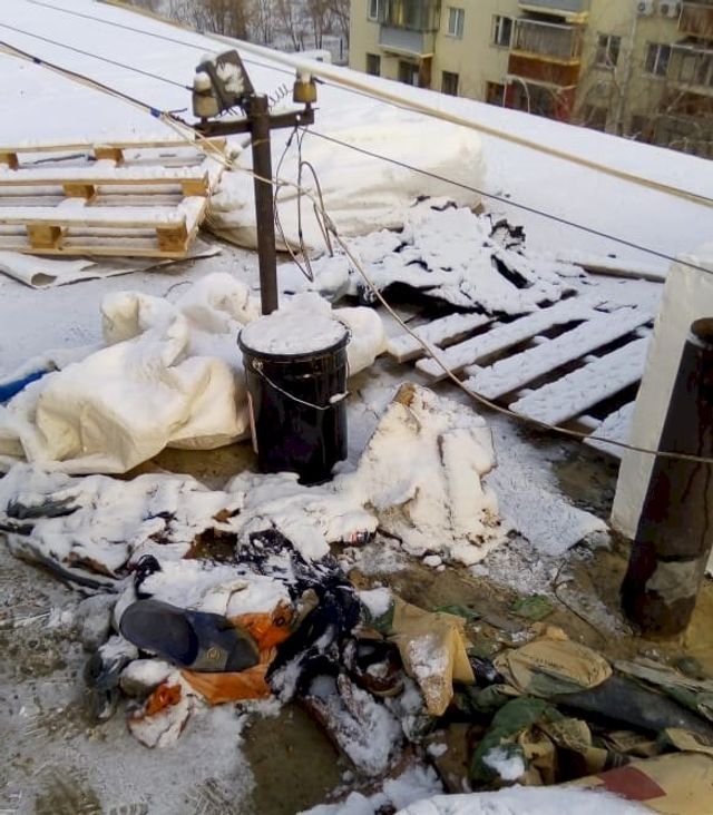«Сорван капремонт. Был установлен срок окончания - 1 сентября 2020. Подрядчик «Теплоэффектмонтаж» в лице главного инженера Фролова заверял нас о завершении ремонта в этом году. В результате работы брошены, на крыше горы мусора, покрытие крыши не завершено и у жильцов отсутствует информация о сроках завершения ремонта», - написал в редакцию ЕАН житель этого дома Виктор.