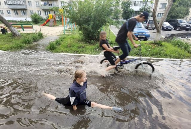 Житель города, фотограф Николай Пушилин выложил в соцсети колоритные снимки, как дети плавают в луже, бегают по ней, катаются на самокате и даже делают в ней шпагат. «Да, импортозамещение, у нас своя Венеция», - написала в комментариях пользовательница сети «ВКонтакте».