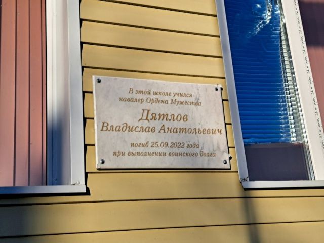 В селе Введенское Кетовского района Курганской области открыли мемориальную доску в память о погибшем на спецоперации Владиславе Дятлове. Ее разместили на здании школы, где учился военный, сообщает райадминистрация на своей странице во "ВКонтакте".