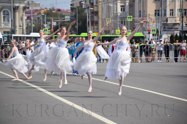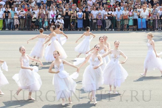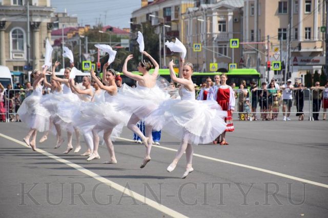 Выступления местных коллективов начались еще днем. На центральной площади выступили танцевальные ансамбли «Созвездие», «Светлячок», «Мечта», артисты центра современного танца «Парадокс» и другие. Вечером состоялось выступление вокального проекта Status-Men из Челябинска, шоу барабанщиц «Династия» из Екатеринбурга с участием солистов курганской филармонии.