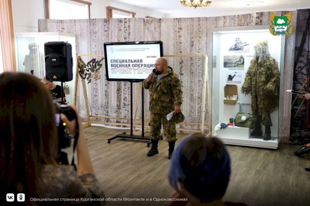 В Кургане открылась первая региональная выставка «Специальная военная операция. Время героев». В Областном краеведческом музее представили около 130 экспонатов, в том числе гранатомет, амуницию бойцов, трофеи и более 40 фотографий.