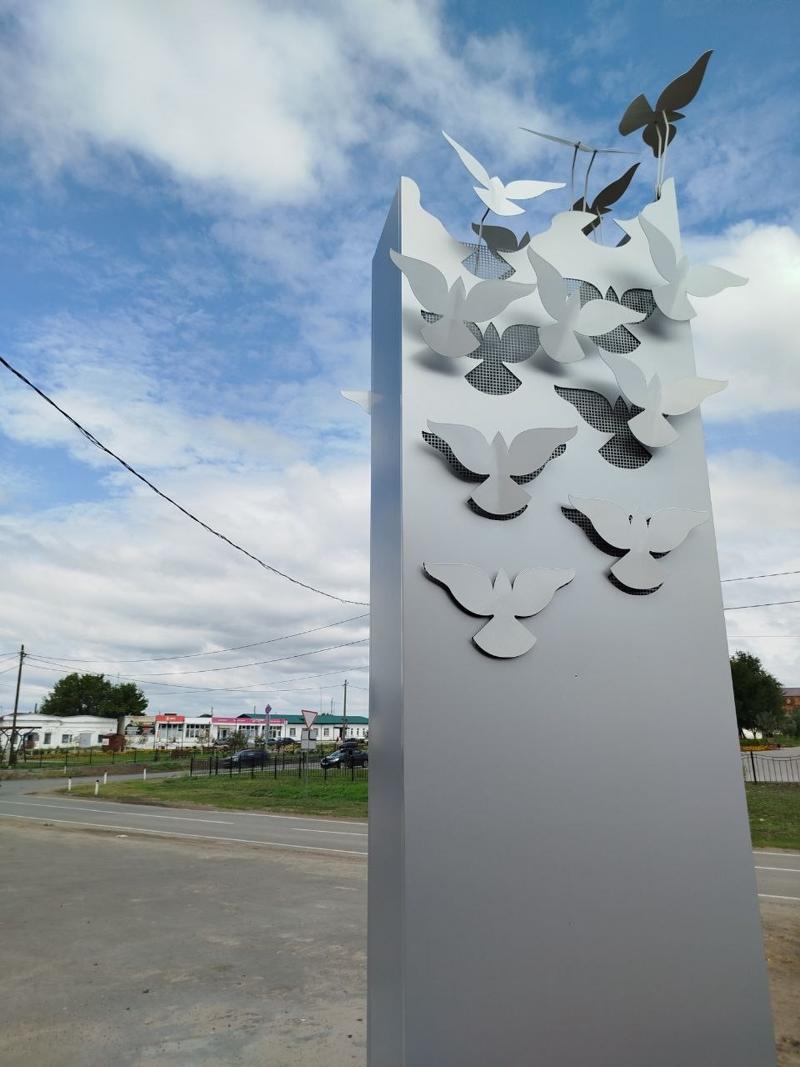 В Звериноголовском Курганской области установили стелу со стремящимися в небо голубями. После подключения к системе электричества она будет светиться, сообщает администрация муниципального округа во «ВКонтакте».