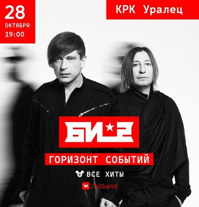 В третьей столице русского рока Екатеринбурге 28 октября выступят звезды отечественной музыки, группа «Би-2». Шура, Лева и Ко представят новый альбом «Горизонт событий» на сцене КРК «Уралец», сообщили ЕАН организаторы из «Телеклуба».