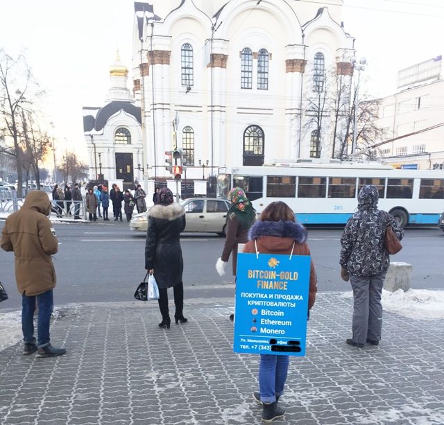 В Екатеринбурге - настоящий бум биткоинов. В центре города появились люди, представляющие из себя ходячую рекламу дорожающей с каждым днем криптовалюты.