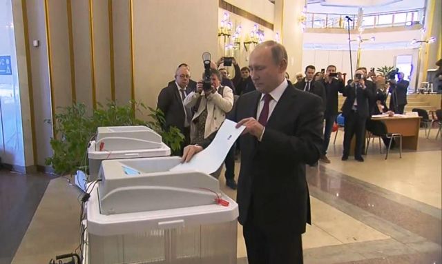 На участок № 2151, расположенный в Российской академии наук, Путин пришел в 09.30. Вся процедура заняла у него пять минут.