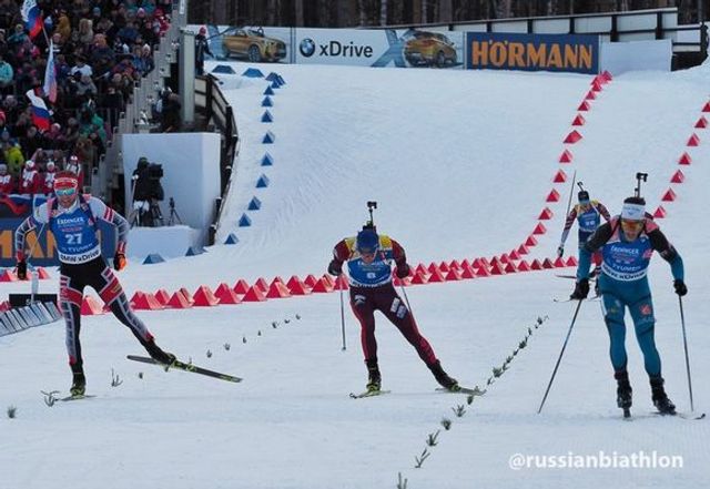 Россиянин Максим Цветков победил в масc-старте Кубка мира по биатлону в Тюмени. Второе и третье места - у норвежцев Эрленда Бьонтегарда и Йоханнеса Бё.